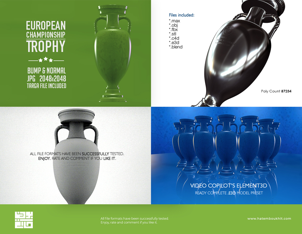 EURO UEFA Trophy 3D Model created with 3ds max 2017.